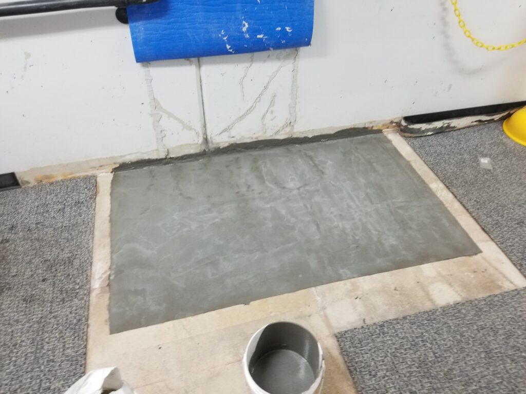- Final Waterproofing and Sealing: After stopping the active leaks, the area was topped off with RESICHEM 573 Fastfill Screed – Concrete Seal. This product is a single-component, engineering-grade, polymer-modified, reactive cementitious coating with high adhesive properties, ideal for permanent immersion or negative pressure waterproofing and capable of resisting hydrostatic pressure up to 145 PSI.