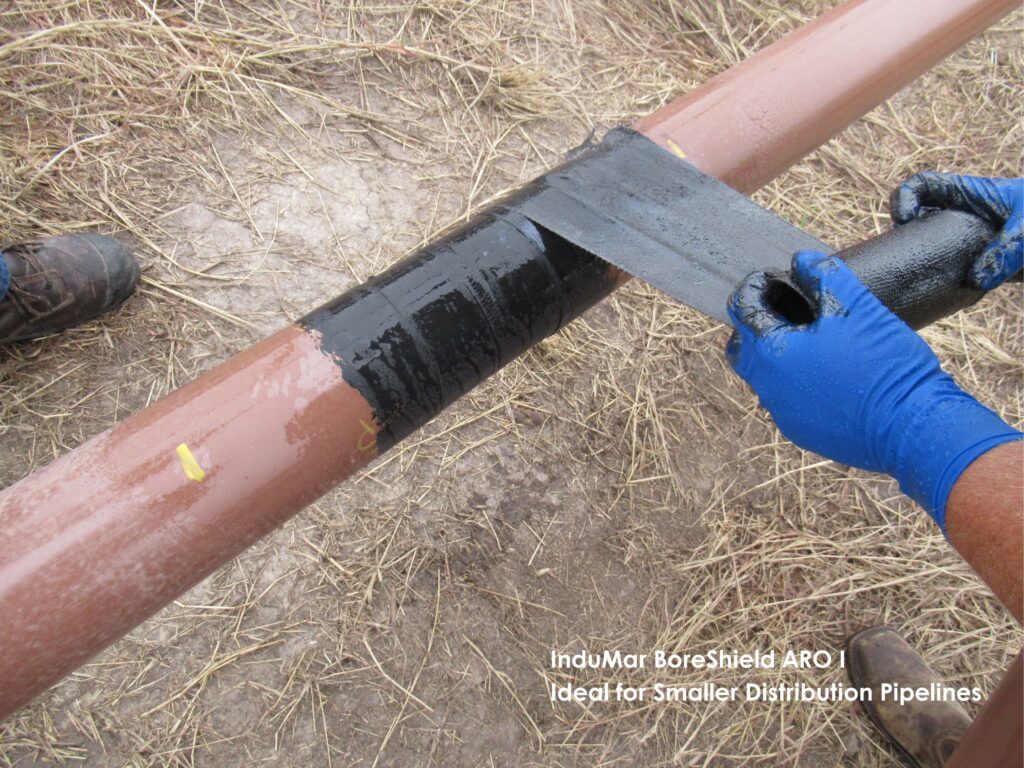 BoreShield ARO I can be installed by one person with no special tools or hot work, and provides for quick, in-field applications, regardless of weather conditions, pipe orientation, or local geometries. Recommended for use on pipes up to 48 inches in diameter.